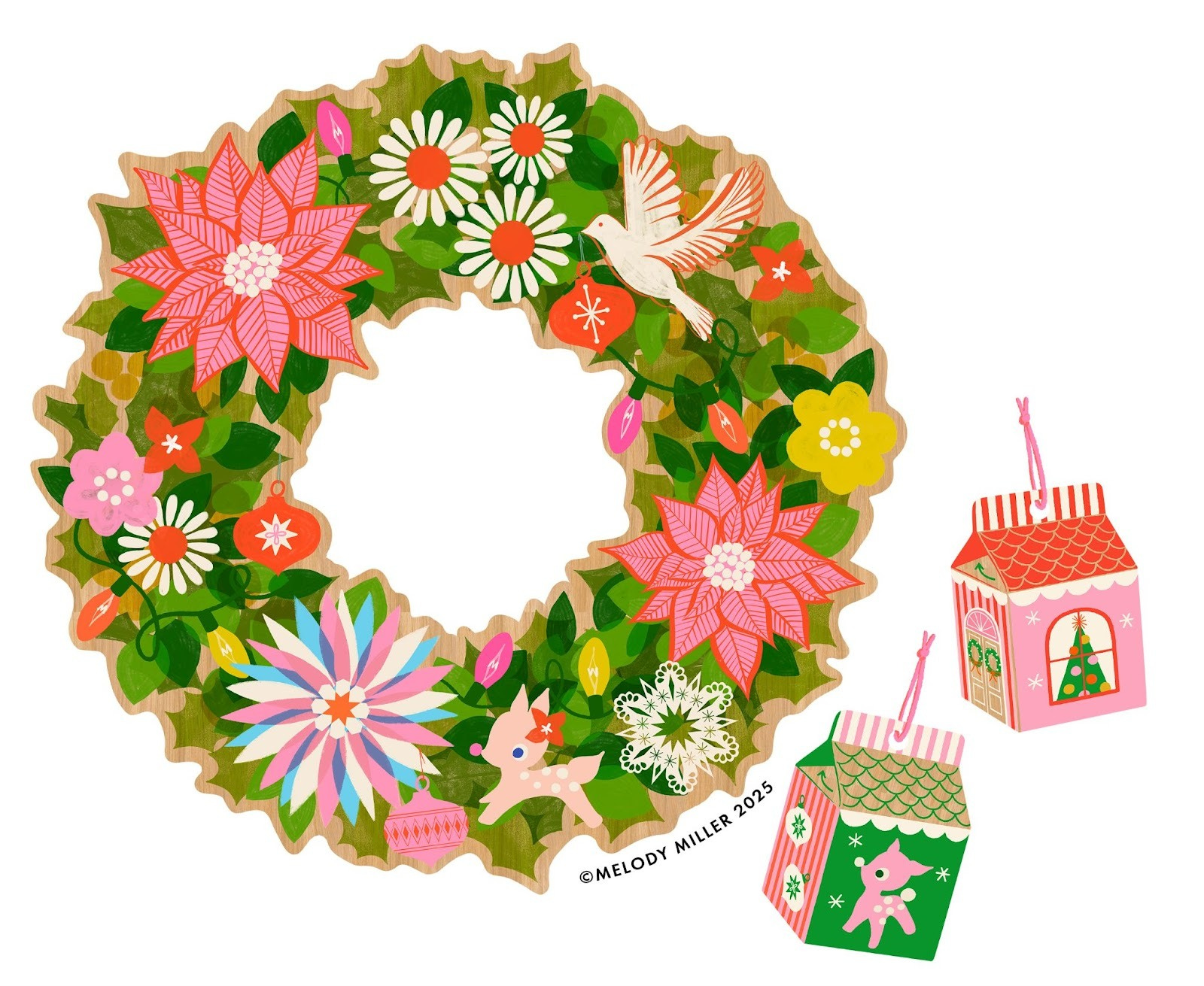 There’s so much advice right now for dealing with things, and I am particularly drawn to the DO LESS school of slowing down and reconnecting with your gentle self, but also, there are literally so many things I want to do right now, so that’s gonna have to wait. I live in Atlanta and I signed up to be a vendor in the Indie Craft Experience Holiday Shopping Spectacular Dec 6-7. For months, I’ve been eeking out little moments during my evenings and weekends to make some new art (I really love doing this, it is so much fun for me). Some of the pieces I’m most excited about are new holiday decorations printed on plywood. The wreath is life size and the little cartons are tree ornaments. There is going to be lots of new art and stickers and other fun stuff as well!